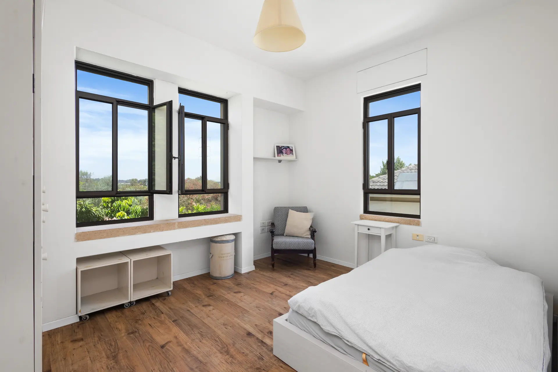 הקומה העליונה מוקדשת לפרטיות. סוויטת הורים אינטימית עם חדר ארונות גדול וחדר רחצה מפנק במיוחד, ועוד שלושה חדרי שינה לילדים או לאורחים. בקומת הקרקע חדר שינה נוסף, נוח ומזמין, מושלם לאורחים או כפינת עבודה שקטה.